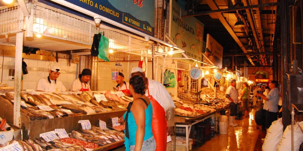 Montado em um prédio histórico com teto de ferro e vidro — projeto possivelmente inspirado por Eiffel — reúne mais de 100 bancas com frutos do mar, carnes, ervas e até joias. É famoso por pratos como “caldillo de congrio” e ceviche, que podem ser saboreados ali mesmo.Journey Latin Americaexploranovo.comconteudocomideias.com